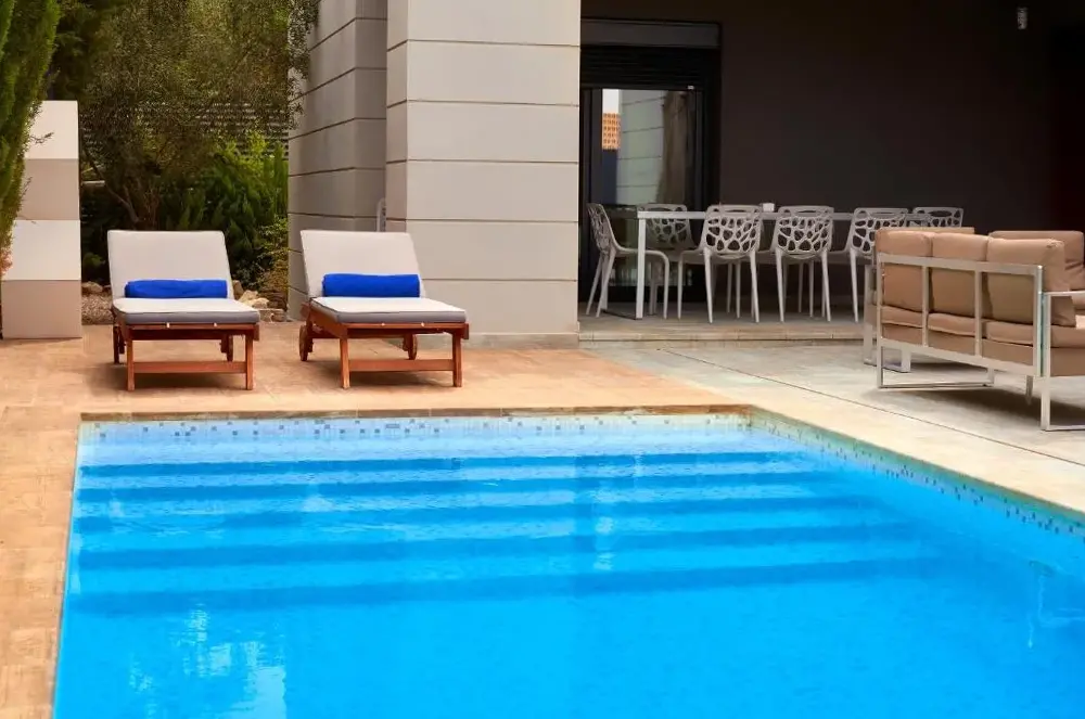 Villa jest wspaniała - super czysta, luksusowa i urocza basen z dużą ilością leżaków słonecznych - idealne dla rodziny lub rezerwacji grupy Luisa była fantastycznym gospodarzem - pomogła nam rezerwację taksówek z lotniska i bardzo szybko reagować na wszelkie pytania - nic nie było Zbyt duże kłopoty dla niej również krótko po dziesięciu minut spacerem do plaży i Nobu również w pobliżu miejsca, w którym pewnego ranka zjedliśmy śniadanie